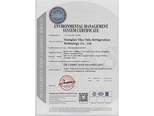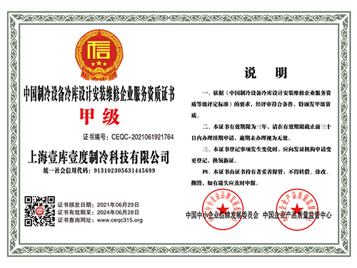 中国制冷设备冷库设计安装维修企业服务资质证书