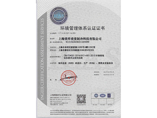 环境管理体系认证证书