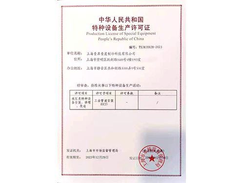 特种设备生产许可证